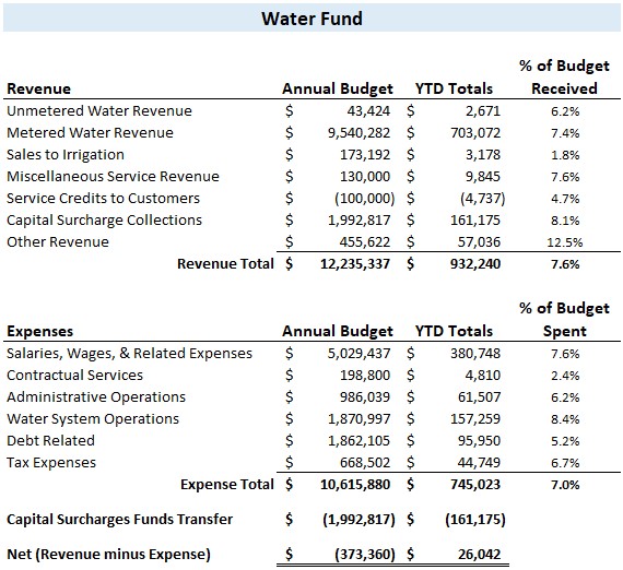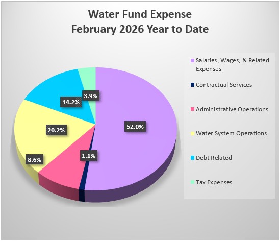 Below is a pie chart depicting the Water Fund Expenses for the current period.
